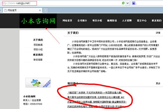 點擊進入發現是做的一個單頁面。里面的內容可夠吸引客戶了,從網站整體來看沒有什么不對勁的地方,但是在往上面看。就發現問題了。