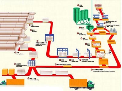 年產5萬m3-30萬m3加氣混凝土生產工藝流程: