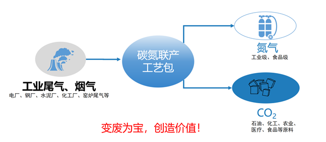 該裝置技術通過一套工藝同時得到二氧化碳和氮氣兩種產品,成功解決了碳捕集領域高成本、低盈利的全球性難題。