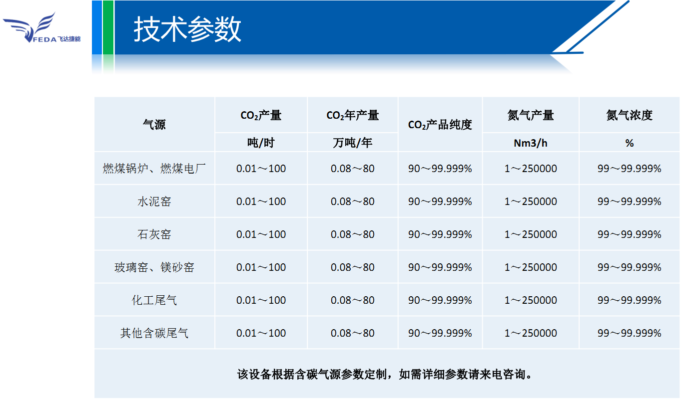 本系統采用變壓吸附或化學法工藝將含二氧化碳氣體分離為90%以上的二氧化碳氣體和99.9%以上的氮氣,二氧化碳可進一步提純至99.9%以上的工業或者食品用產品,也可以經進一步凈化提純至99.999%以上的電子特種氣體產品。